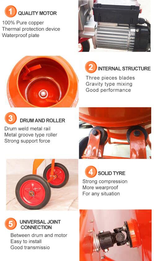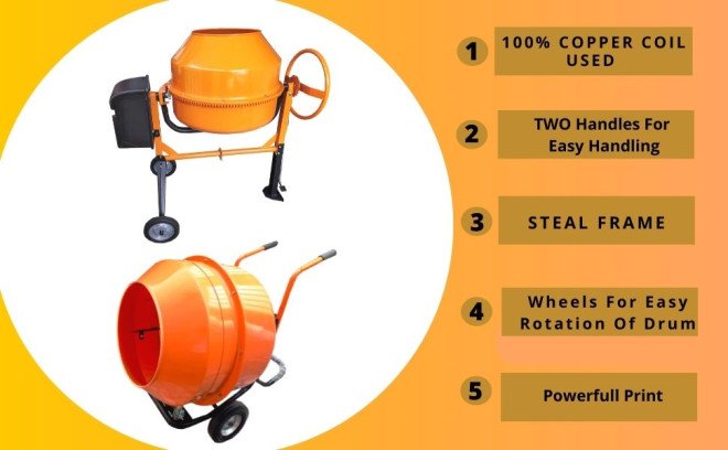 - Heavy-duty mixing machine designed for concrete preparation